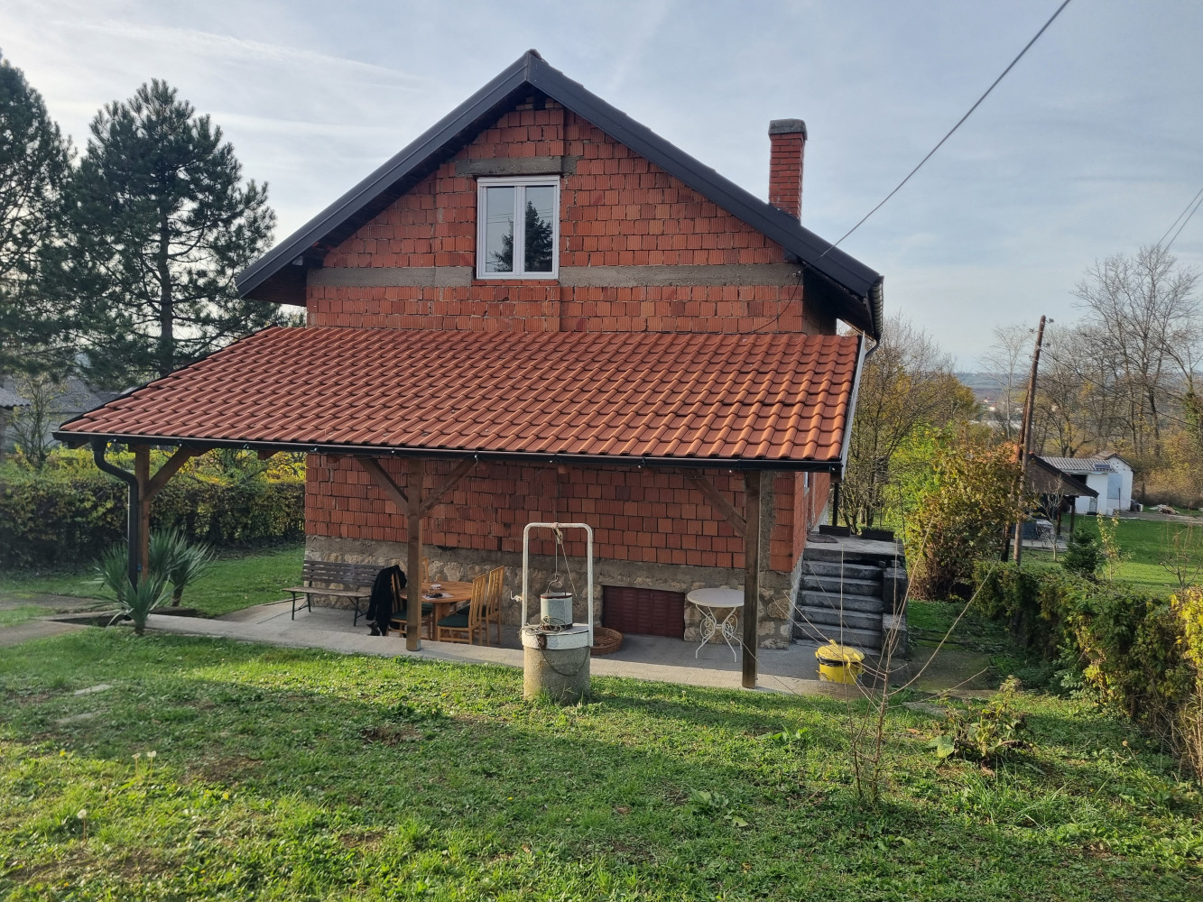 Odlična ponuda. Dobra kuća na odličnoj lokaciji. Ukupna površina objekat 136m2, podeljeno na tri etaže. Suteren: garaža, ostava, toalet. Visoko prizemlje: veliki dnevni boravak, kuhinja sa trpezarijom i neobično komforno kupatilo. Potkrovlje: predsoblje, dve spavaće sobe, kupatilo. Gradska voda, bunar, trofazna struja. Plac je pod blagom kosinom, površine 10a 05m2, redovno održavan. Na placu je izgrađen i pomoćni objekat sa furunom, dve ostave i toaletom.