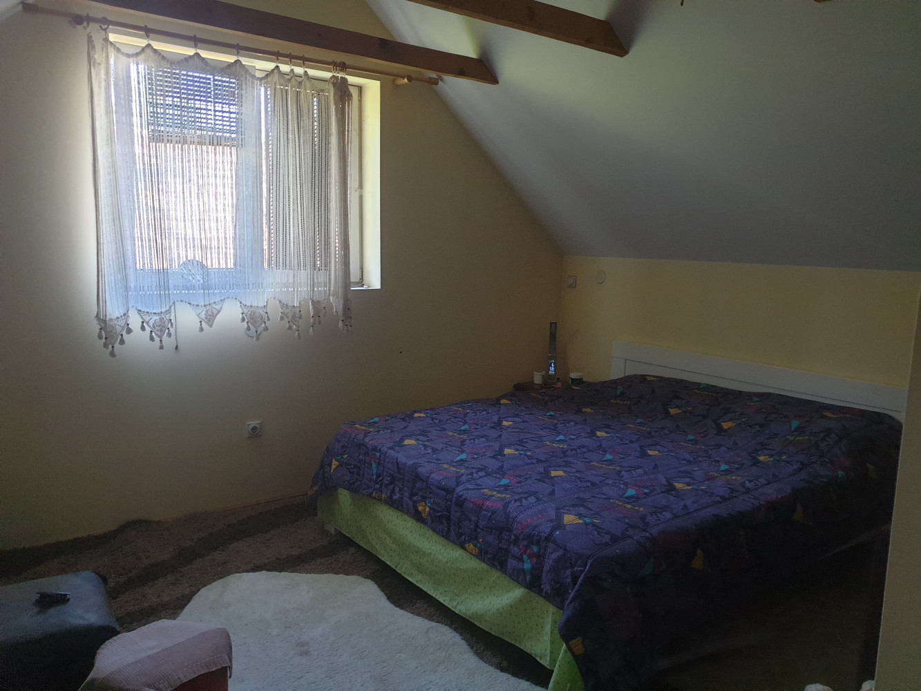 Lepa kuća u savršenom okruženju. Objekat stambene površine oko 100m2, podeljeno na dve etaže. Prizemlje: hodnik, veliki dnevni prostor, kuhinja sa trpezarijom, soba i kupatilo. Potkrovlje: dve sobe. Poslovni prostor oko 100m2: velika garaža visine oko 4m, dve pomoćne prostorije (radionica i soba za radnike). Gradska voda, trofazna struja. Objekat ima odobrenje za gradnju ali nije upisan u katastar, svi uslovi postoje za uknjižbu. Odlična lokacija. Ulica mirna, uređena dvorišta, okruženo hrastovom šumom i četinarima. Stvarno dobra ponuda koju ne bi trebalo propustiti i što je najvažnije realna cena. Srećno.