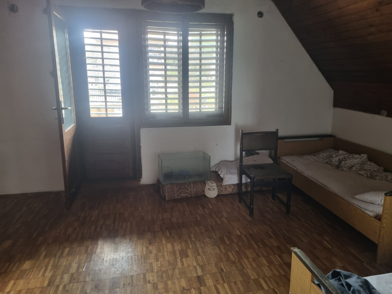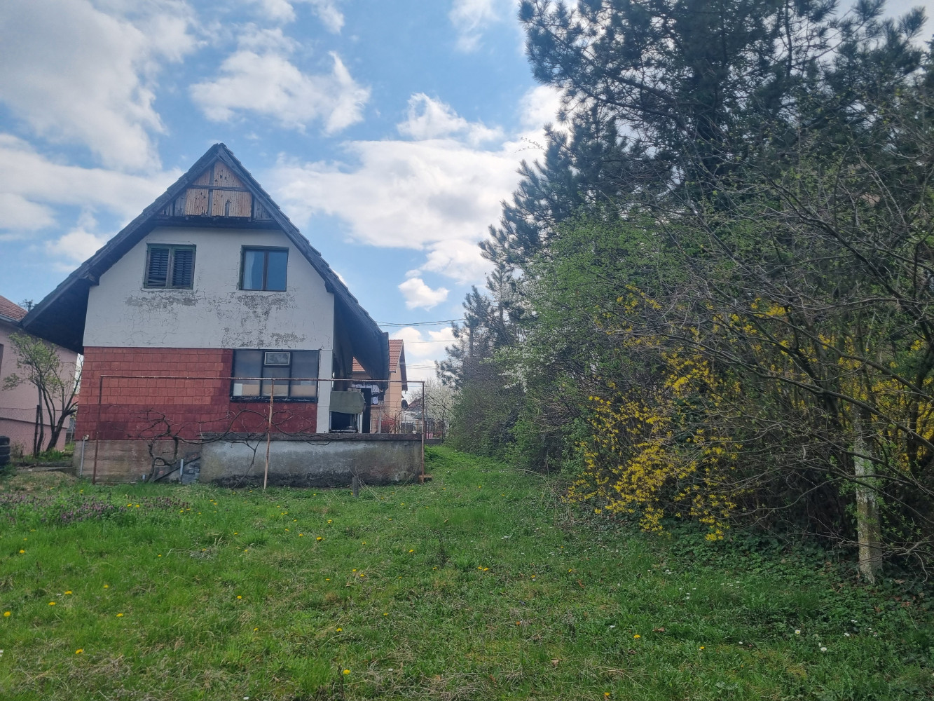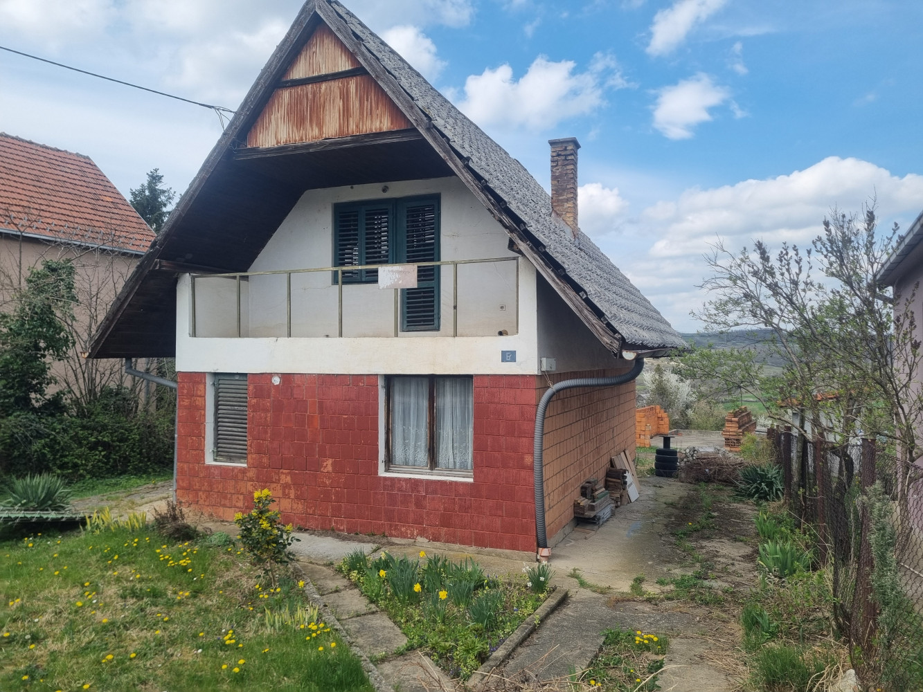 Upisana je kao porodična stambena zgrada ali je po lokaciji i po projektu zamišljena kao idealna i vrlo lepa kuća za odmor. Objekat je u osnovi 80m2, građevinska površina 127m2, korisna površina 100m2, podeljeno na dve etaže. Prizemlje: veliki dnevni boravak, kuhinja sa trpezarijom i kupatilo. Potkrovlje: dve spavaće sobe, kupatilo. Plac pod blagom kosinom površine 8a 27m2. Asfalt do kapije, sporedna ulica. Tačno je da je vreme učinilo svoje, potrebno je kompletno renoviranje, isplati se.